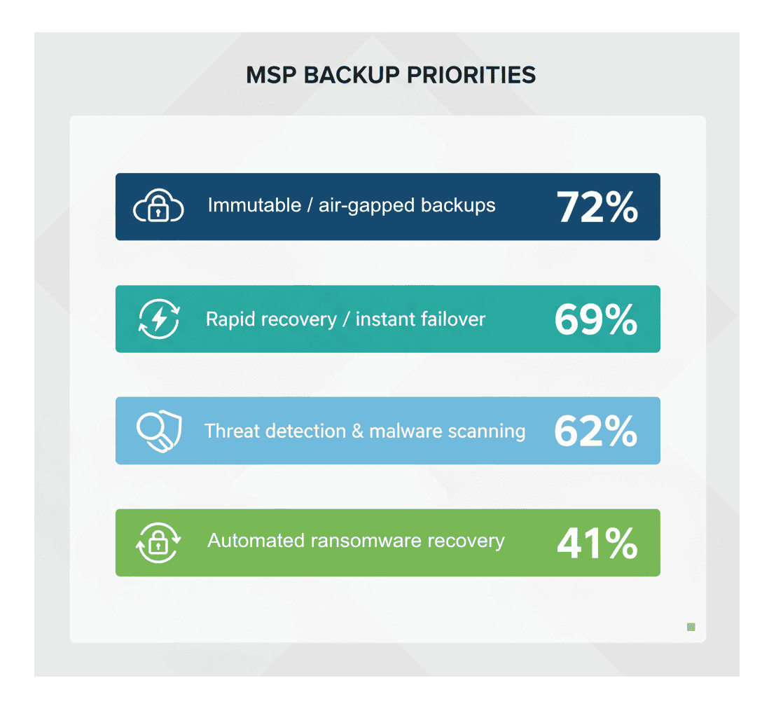 - Ransomware protection remains a critical concern for 62% of MSPs