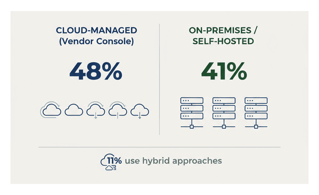 - Nearly even split between cloud-managed (48%) and on-premises (41%) preferences—flexibility is essential