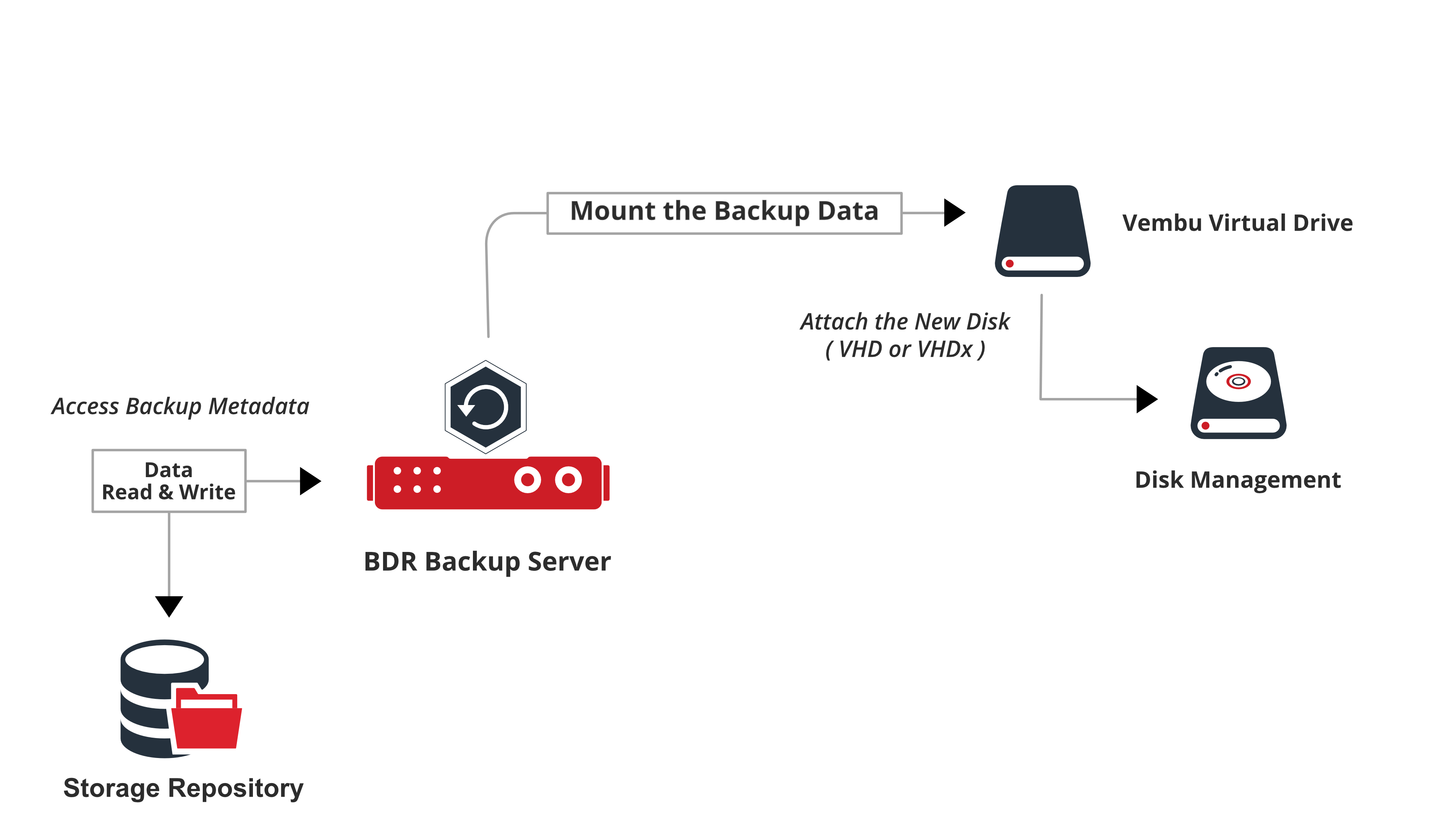 - Once you trigger the restore process, the backup data will be mounted in the Vembu Virtual Drive using the dokan mounter. If your disk is less than 2TB it will be mounted as a VHD file, if more than 2TB, it will be mounted as VHDX.