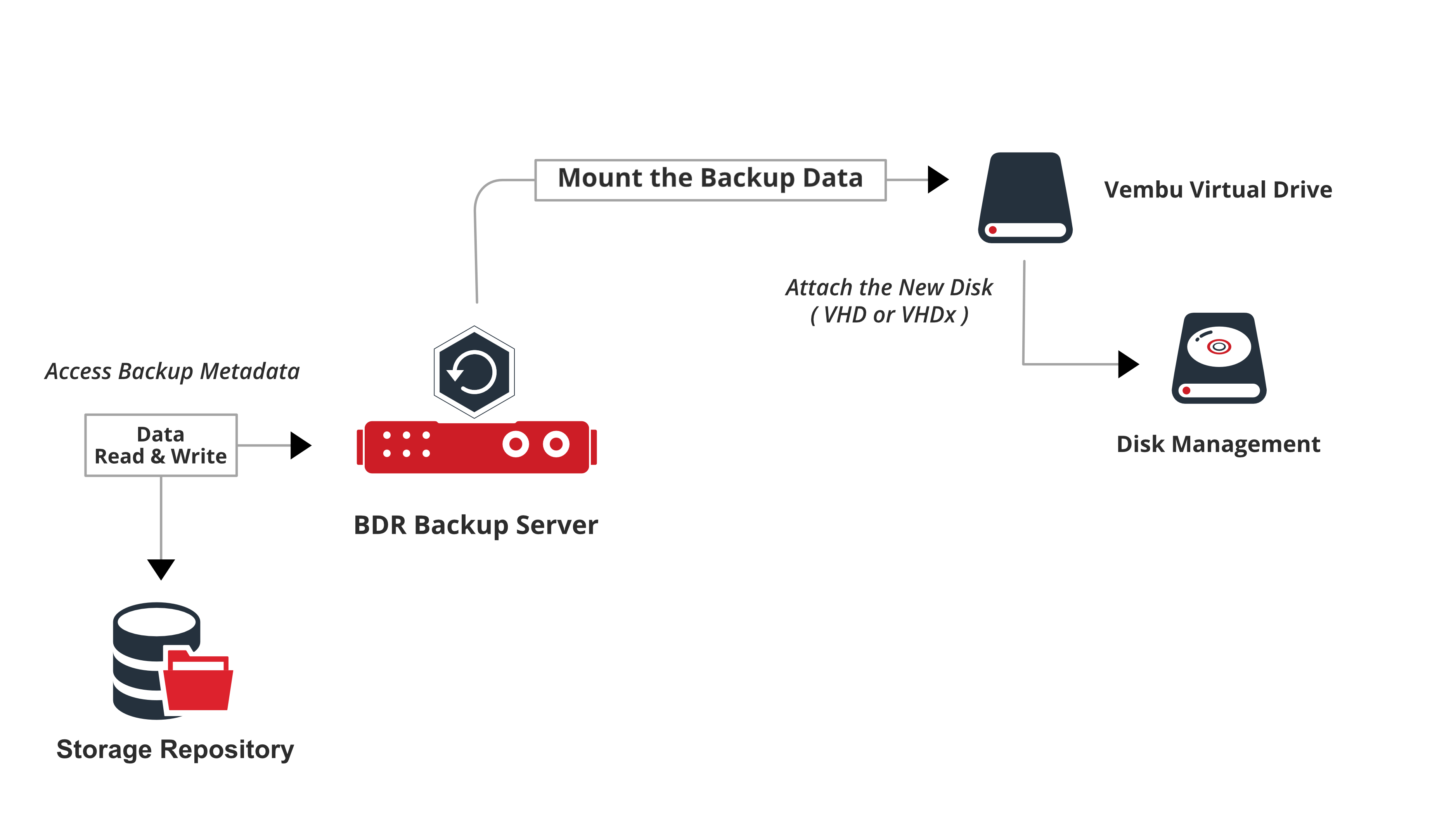 - Once you trigger the restore process, the backup data will be mounted in the Vembu Virtual Drive using the dokan mounter. If your disk is less than 2TB it will be mounted as a VHD file, if more than 2TB, it will be mounted as VHDX.