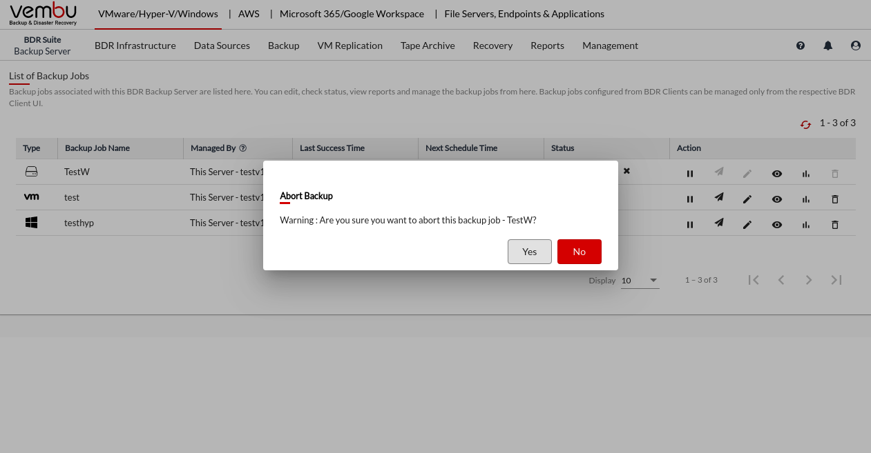 • Once you click Yes, the backup will be aborted successfully.