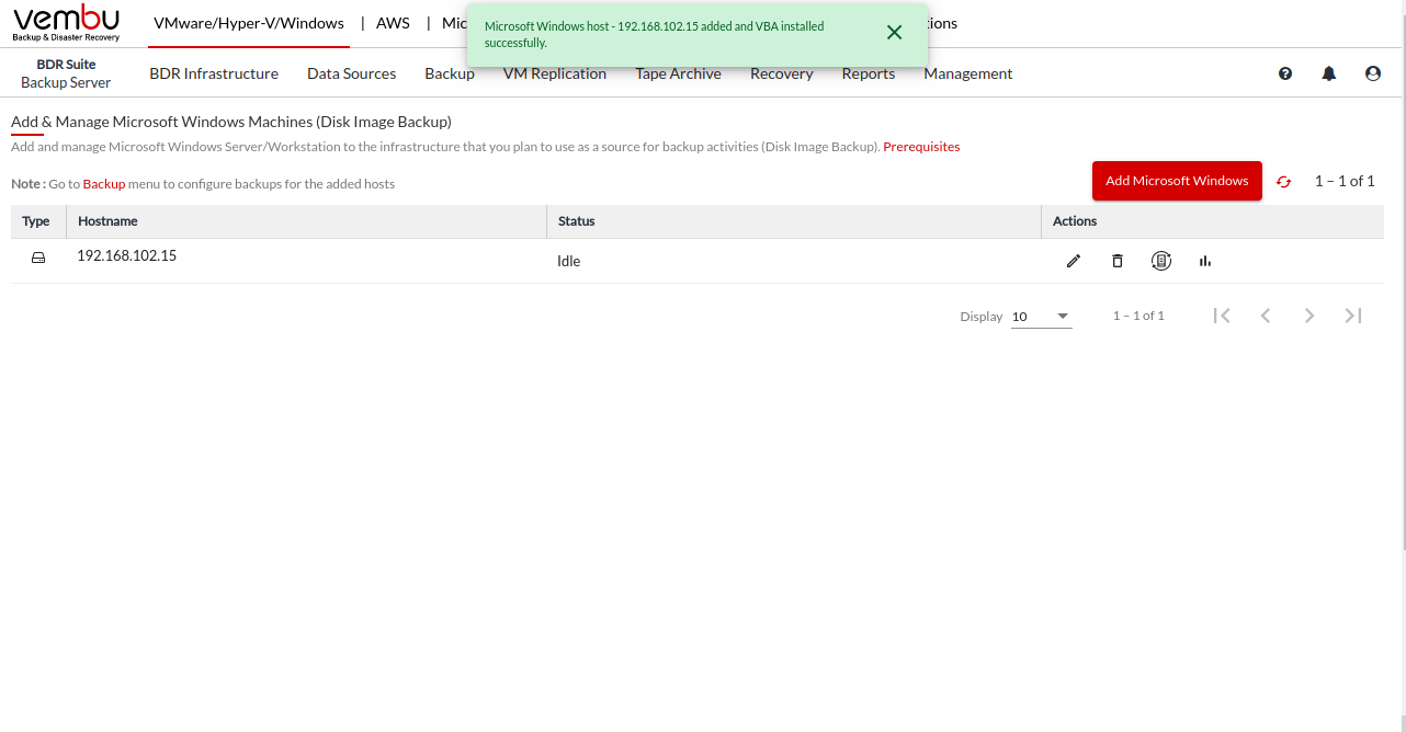 ![]() | Note: You can add as many Windows Server host into the Vembu BDR Server whenever required |
