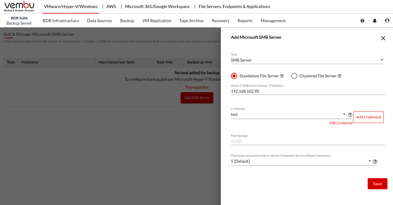 By default, the port ‘42005’ is used for the communication between the Vembu BDR Backup Server and the SMB cluster.