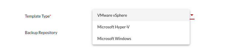 Template Type: Choose the type of template you want from options like VMware vSphere, Microsoft Hyper-V and Microsoft Windows