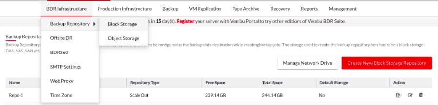 Step 1: Click on the BDR Infrastructure tab and choose the Block Storage option.