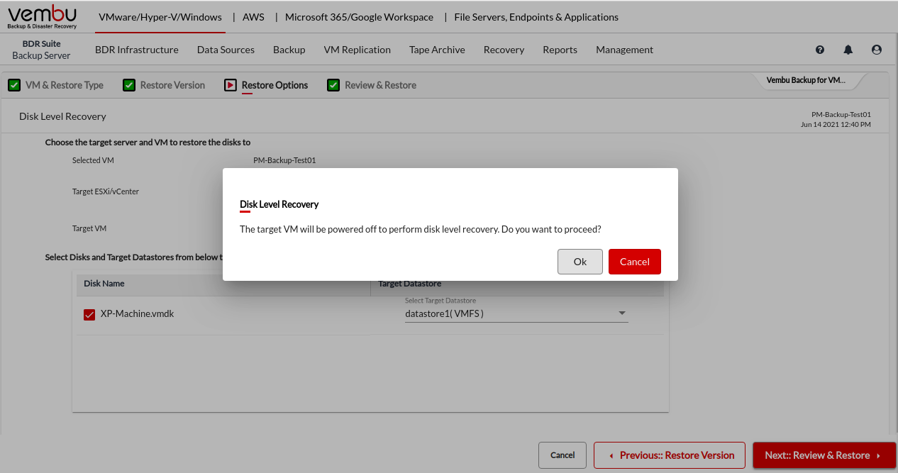 ![]() | Note: The target VM should be in the turned-off state to perform the disk level recovery. |