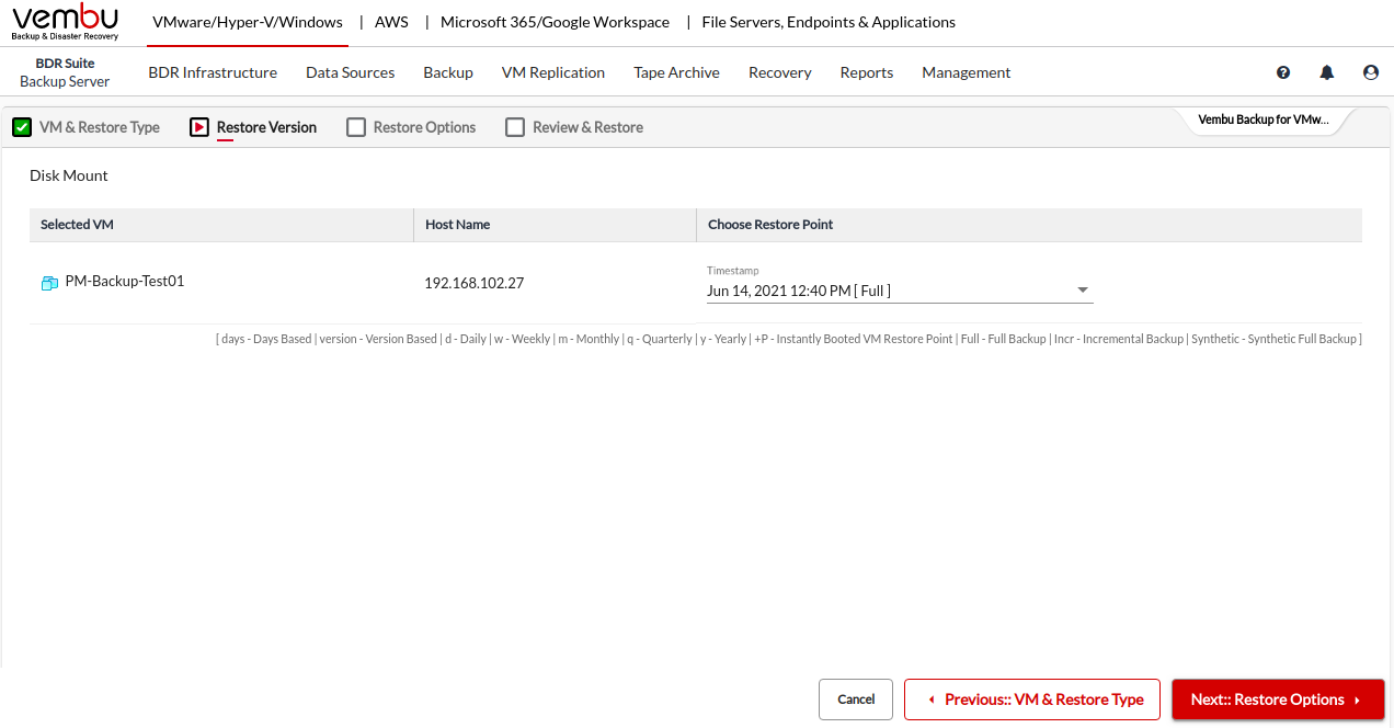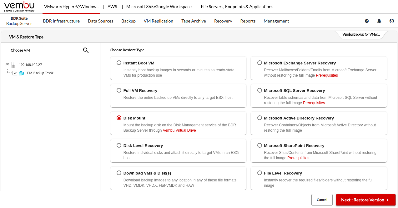 Step 1: Choose the VM/ Host and Restore Type