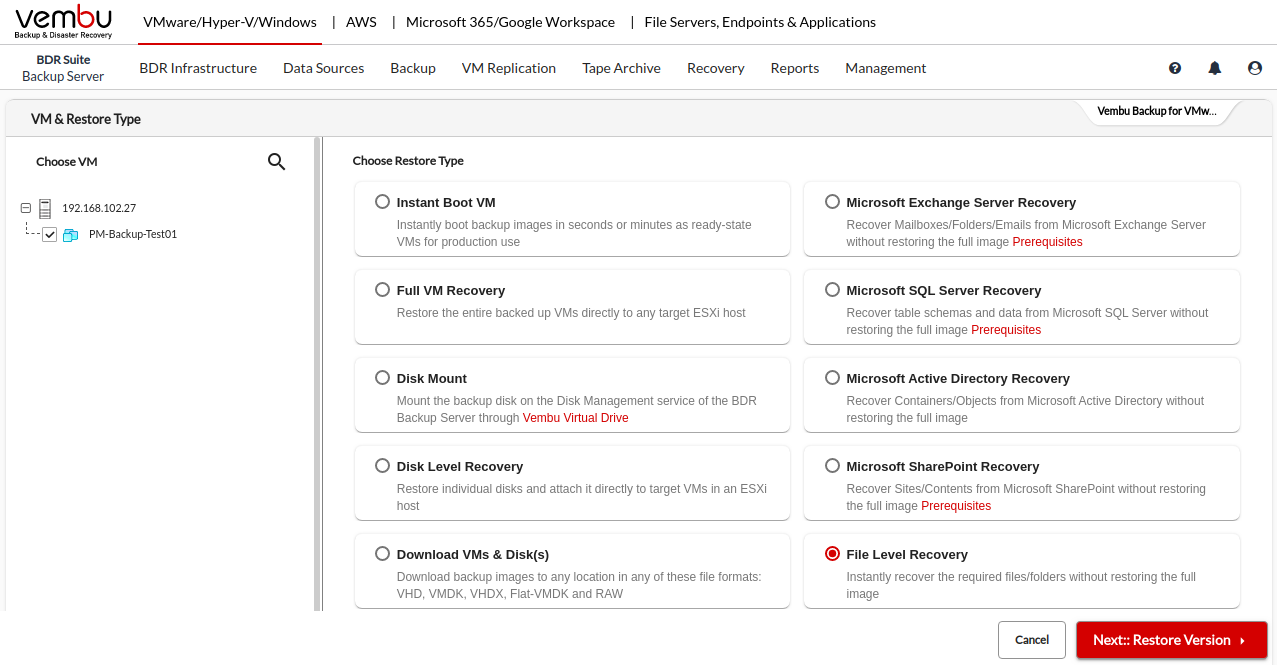 File Level Recovery