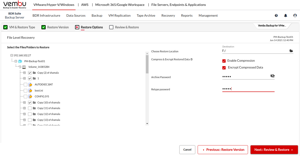 Encrypt Data- If you want to encrypt the restored files/folders. You need to provide an Archive Password to secure the restored files/folders from unauthorized access.