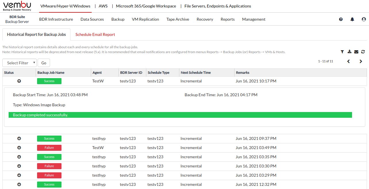 Vembu BDR Suite » Reports » Historical