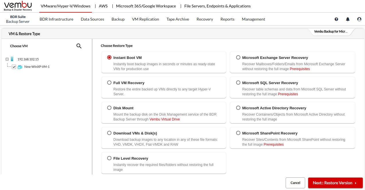 Step 1: Choose the VM/Host and Restore Type