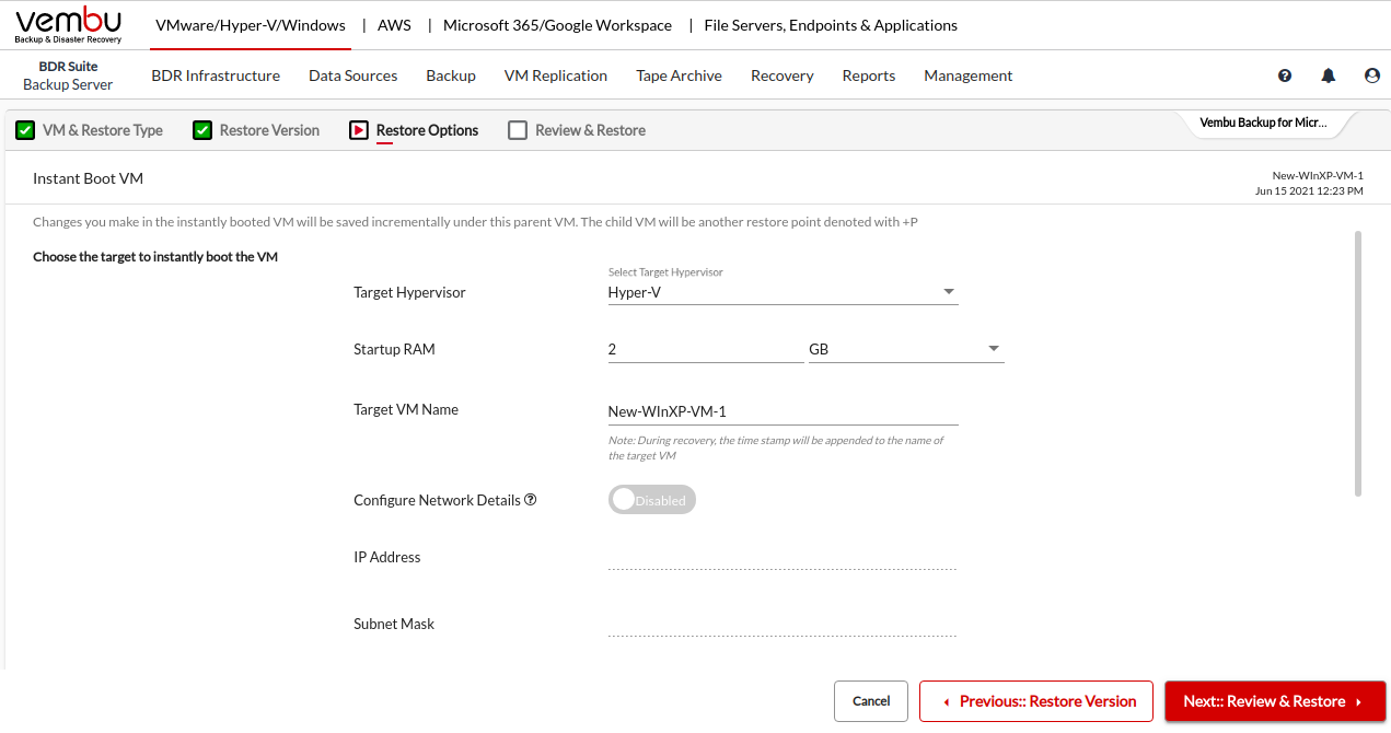 Restore to Hyper-V Hypervisor