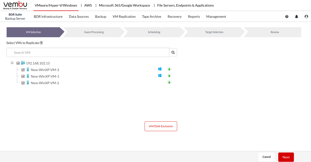 Vembu BDR Suite » Backup & Replication for Microsoft Hyper-V » Configure VM Replication » Select VMs to Replicate