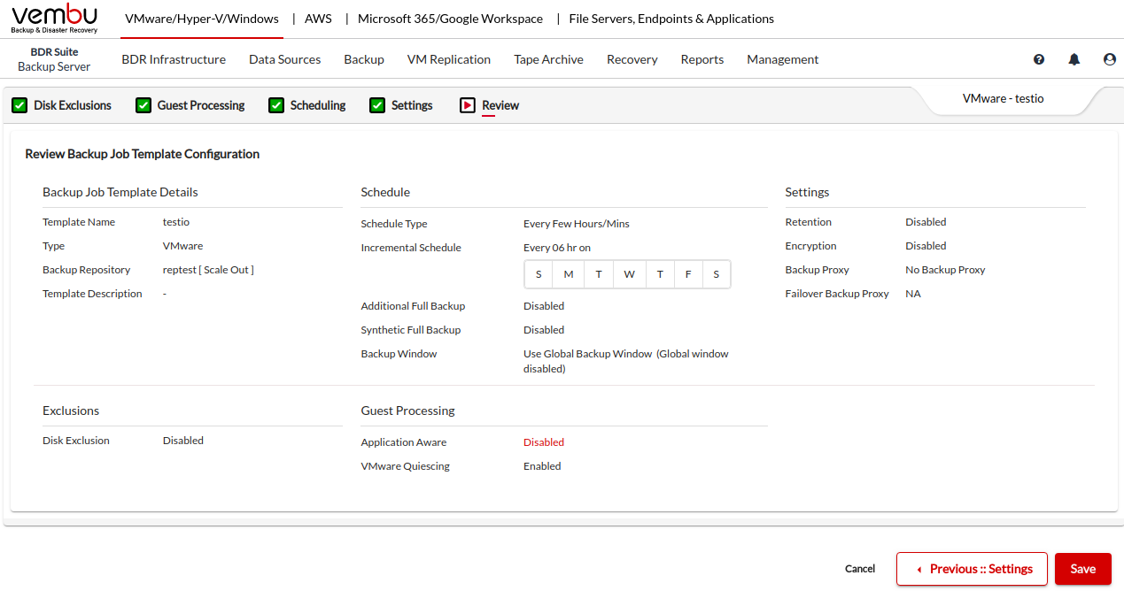 Once done you can review all the configuration and save the Backup Job Template.