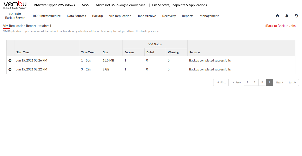 Share: vembubdrsuitebetauserguide Reports Vembu BDR Suite » Backup & Replication for Microsoft Hyper-V » Manage VM Replication Jobs » Reports ReportsNextPrevious