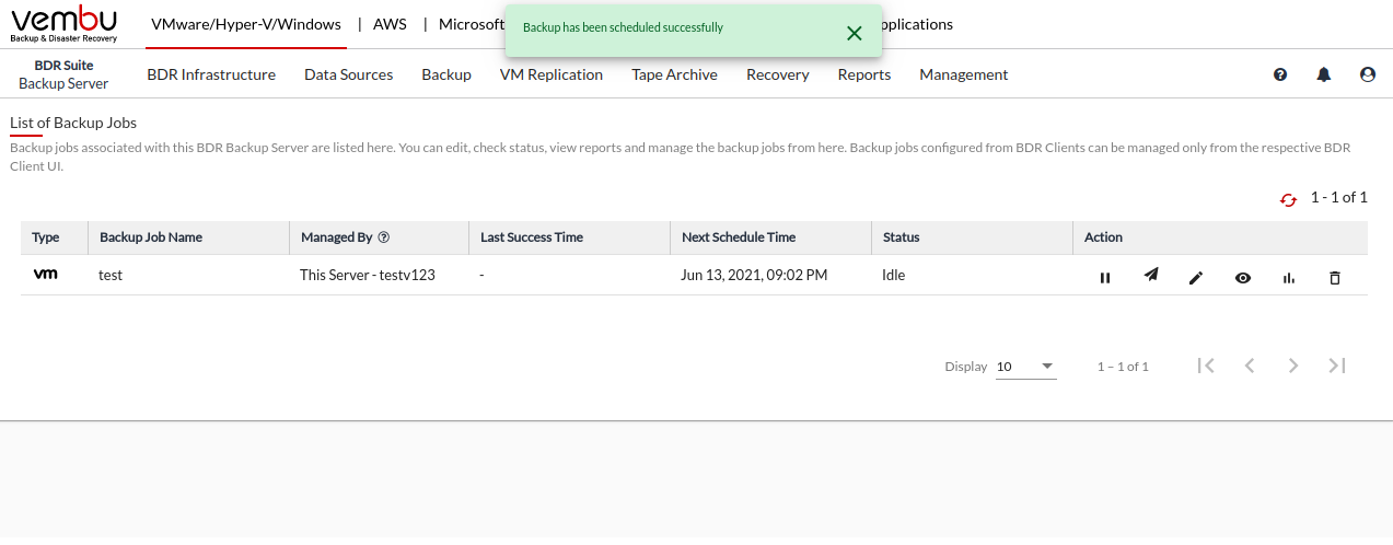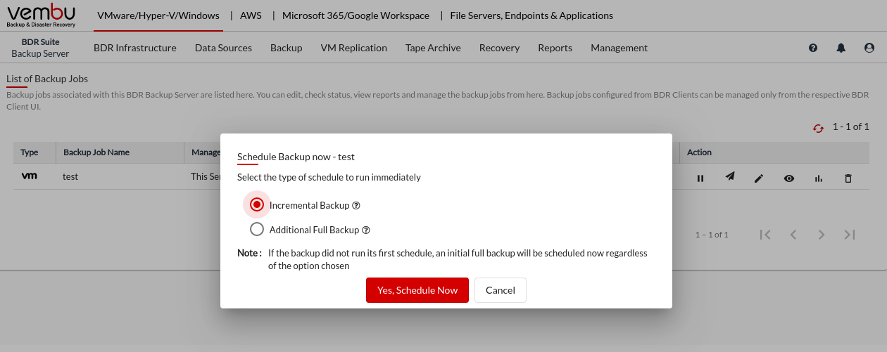 Vembu BDR Suite » Backup & Replication for VMware » Manage Backup Jobs » Schedule Backup Now