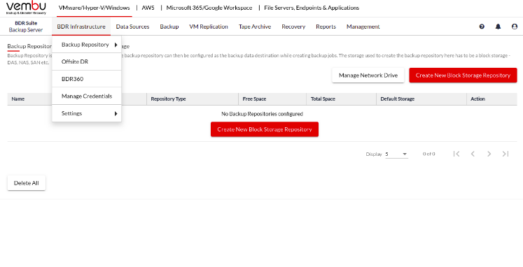 The BDR Infrastructure has to be configured as the first step, to begin with, the Vembu Backup and Replication for VMware.