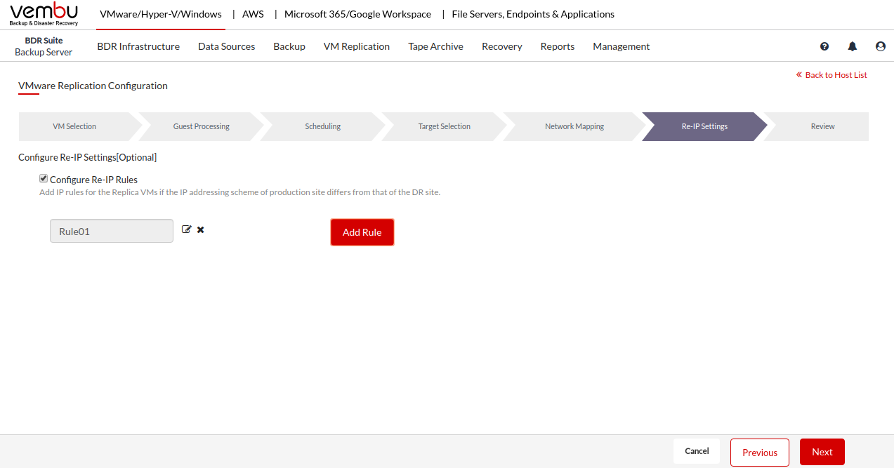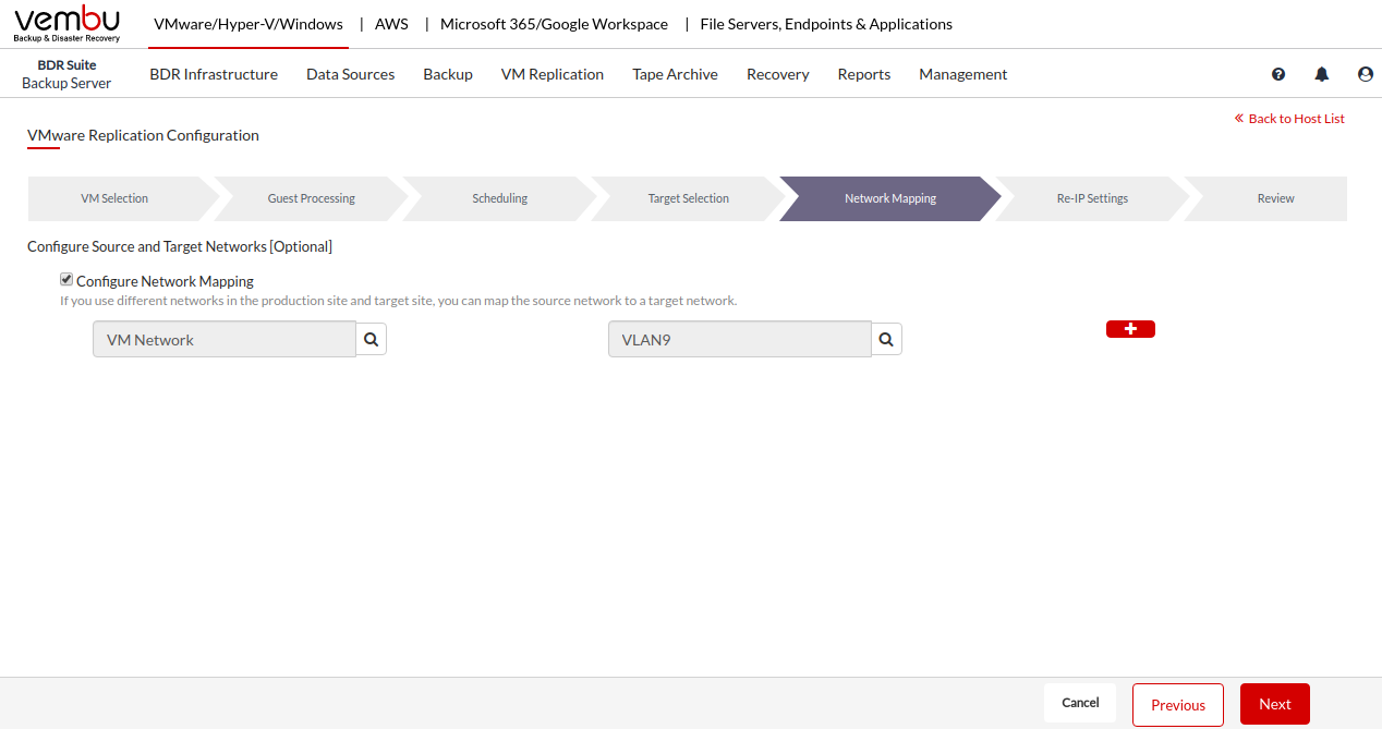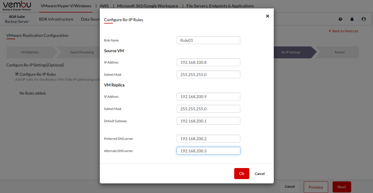 Vembu BDR Suite » Backup & Replication for VMware » Configure VM Replication » Configure Network Mapping and Re-IP Mapping