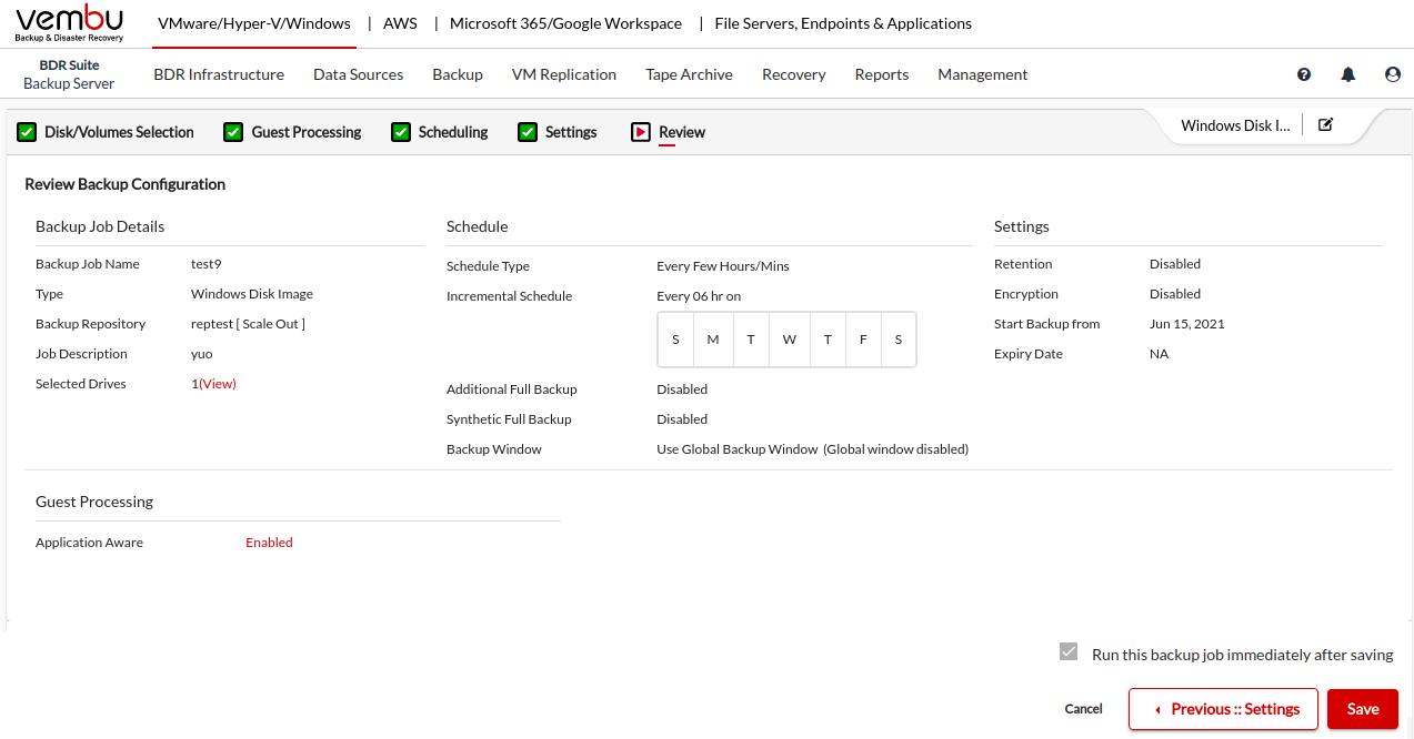 Vembu BDR Suite » Backup for Microsoft Windows » Configure Backups » Review & Save Backup Configuration