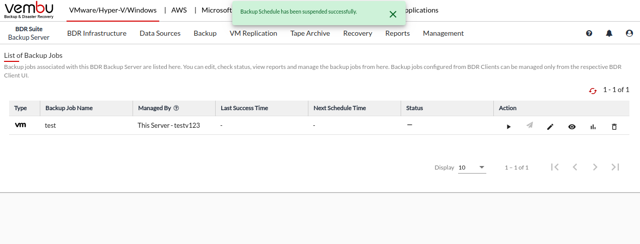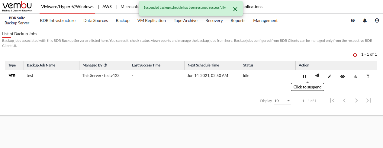 Vembu BDR Suite » Backup & Replication for VMware » Manage Backup Jobs » Suspend/Resume
