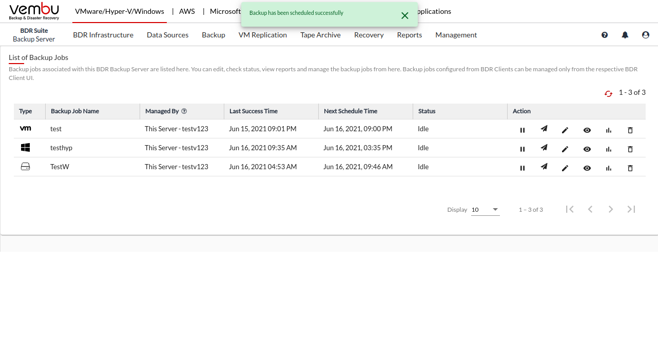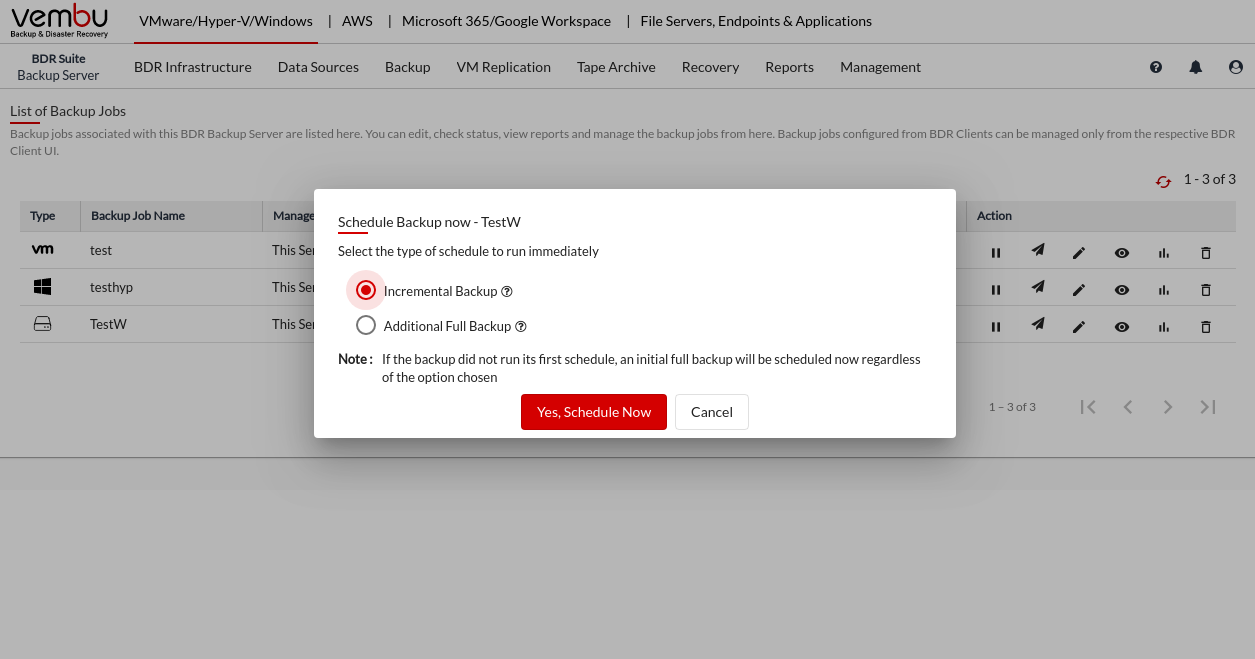 Vembu BDR Suite » Backup for Microsoft Windows » Manage Backup Jobs » Schedule Now