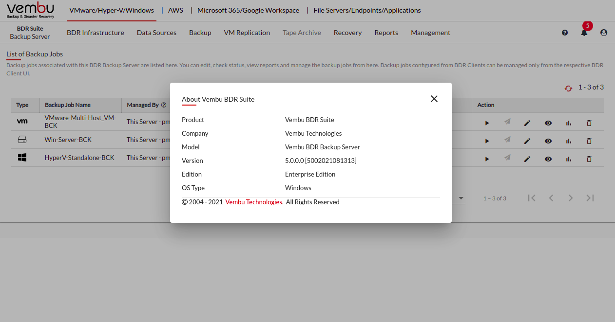 Download the latest version of the Vembu BDR Backup Server build, refer to the upgrade path for the download links.