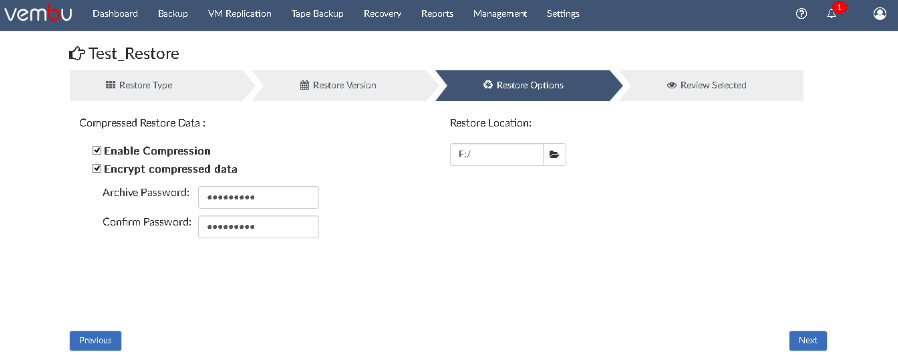 - The next step is to select whether you want to compress your restore data. Select the Enable Compression option for compressing your restore data.