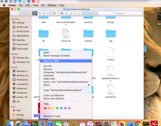 - Open the Mac machine where NetworkBackup Client is installed. Open the NetworkBackup Client installation folder, right-click on BDRSuite NetworkBackup, and select the Move to Trash option as shown in the image below.