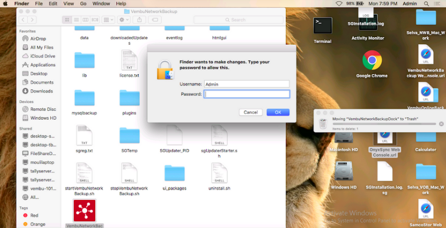 - Type the password and click OK. You can witness NetworkBackup Client being uninstalled.