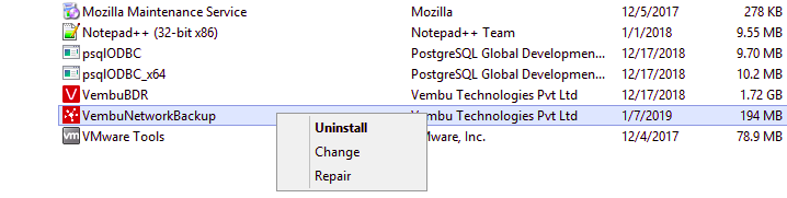 - From the Control Panel. go to the Programs and Features option, right-click BDRSuiteNetworkBackup and select the Uninstall option to proceed with the clean uninstallation process.
