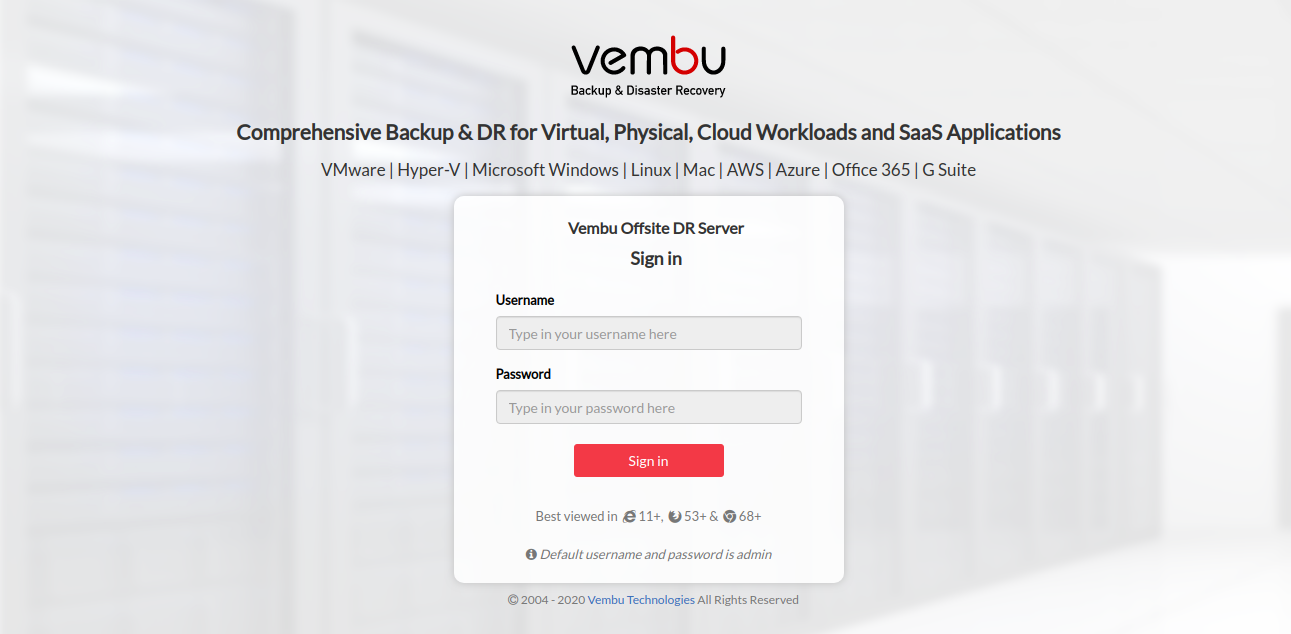 Vembu BDR Suite » Offsite Copy/DR » Enabling Offsite Copy Management » Vembu Offsite DR Server (To Your Data Center) » Login to Web GUI