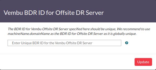 It is recommended to give the machine name.domain name as Offsite DR Server ID since it should be globally unique. |